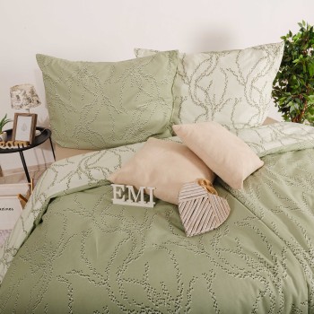 Flanelové povlečení Viviano v elegantním zeleném odstínu s jemným vzorem je vyrobeno ze 100% bavlněného flanelu, který vás za chladných nocí zahřeje. Měkký materiál je příjemný na dotek a zapínání na zip usnadňuje každodenní používání.
